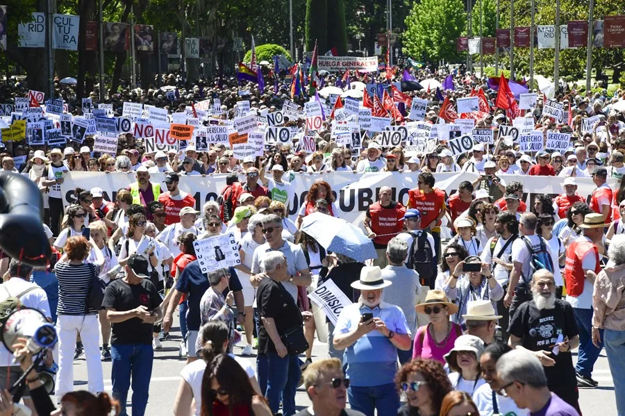 MADRID, 26 DE MAYO. Miles de personas se congregaron este domingo en la emblemática plaza de Cibeles para exigir una sanidad más pública y mejor financiada en la Comunidad de Madrid. La manifestación, convocada por la plataforma ‘Vecinas y vecinos de los barrios y pueblos de la Comunidad de Madrid’, ha sido un claro reproche al Ejecutivo regional presidido por Isabel Díaz Ayuso, acusado de privatizar servicios y desmantelar la Atención Primaria.