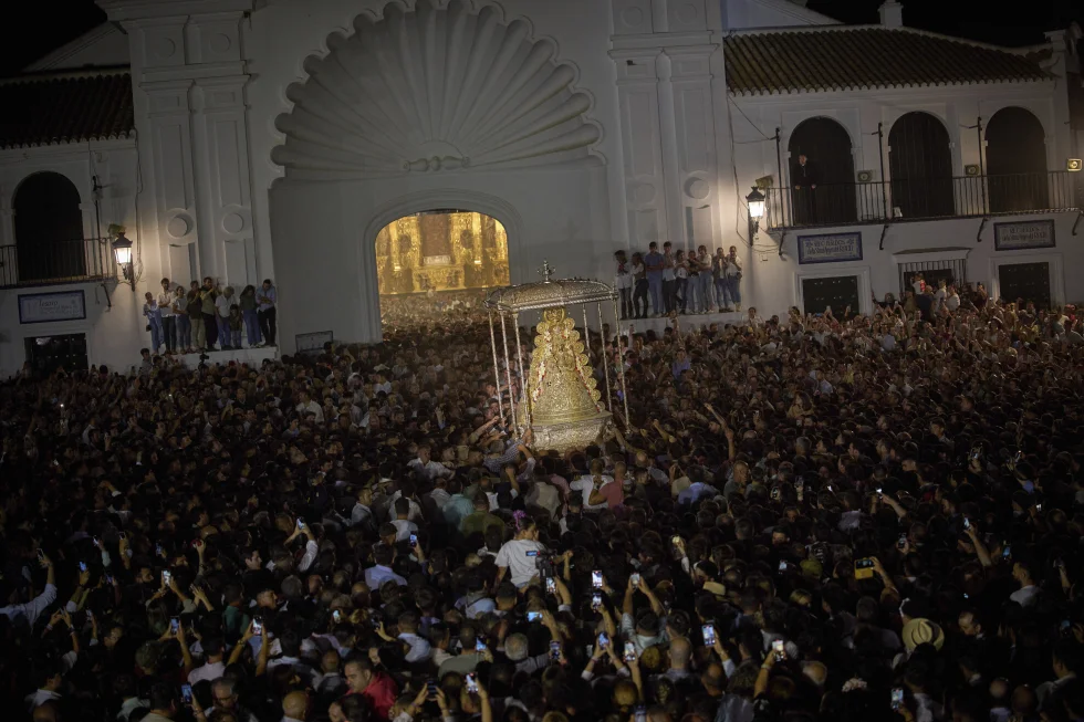 La emoción alcanza su clímax durante la procesión del domingo por la noche, cuando la imagen de la Virgen recorre la aldea para visitar a cada hermandad. “Es que uno da tantas vueltas: lo suyo, los amigos… eso ha explotado”, dijo entre lágrimas Sara de la Haza, tras ver a la Virgen junto a sus amigas.