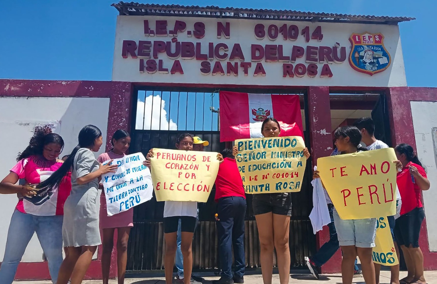 “Bienvenidos a Santa Rosa de Loreto, Perú” es el mensaje que da la bienvenida a los viajeros al llegar a esta isla del departamento de Loreto, ubicada frente a las ciudades de Leticia (Colombia) y Tabatinga (Brasil). Se trata de una zona estratégica en la triple frontera amazónica, y en Santa Rosa todo evidencia su pertenencia al Perú: los colores rojo y blanco predominan en casas, mototaxis y murales; las escuelas, las oficinas del Banco de la Nación y los servicios de migraciones operan bajo jurisdicción peruana.
