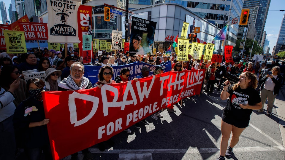 Toronto, 20 sep (EFE).- Miles de personas marcharon por el centro de Toronto este 20 de septiembre en el marco de una serie de protestas a nivel nacional que buscan presionar al gobierno liberal de Canadá para priorizar la protección del medioambiente, los derechos de los pueblos indígenas, de los migrantes y de los trabajadores antes de la presentación del presupuesto federal el próximo 4 de noviembre.
