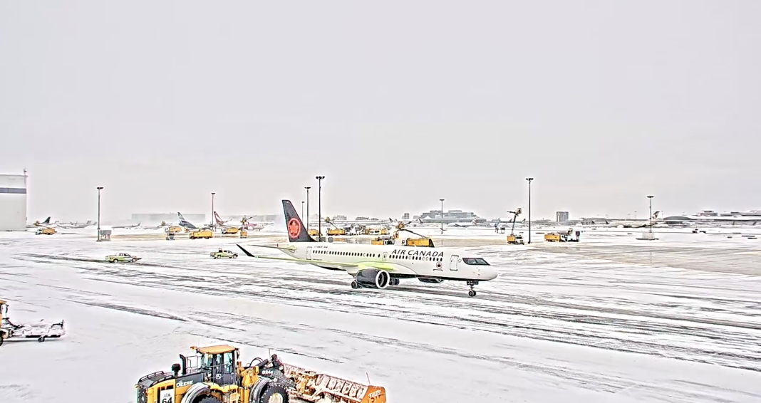 La GTAA aseguró que sus equipos de remoción de nieve trabajaban durante toda la jornada para despejar pistas y mantener operativos los aeropuertos.