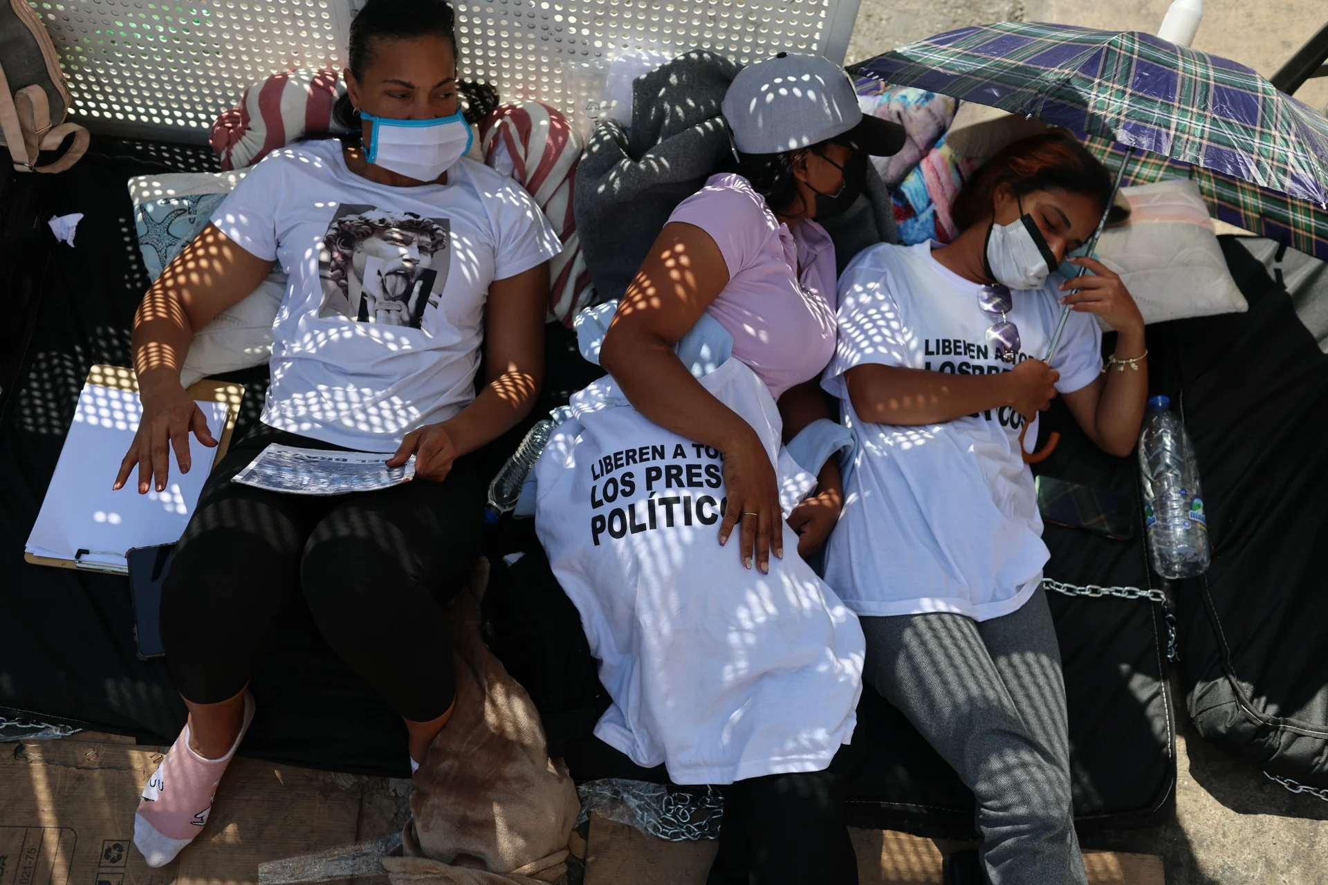 Más de una decena de personas comenzaron la protesta a las 6:00 hora local (10:00 GMT) en las afueras del recinto policial. Según indicaron, su última comida fue alrededor de las 3:00 de la madrugada. Los manifestantes permanecen en el suelo, sobre colchonetas y protegidos del sol con paraguas, junto a un cartel que reza: “Familiares en huelga de hambre”.
