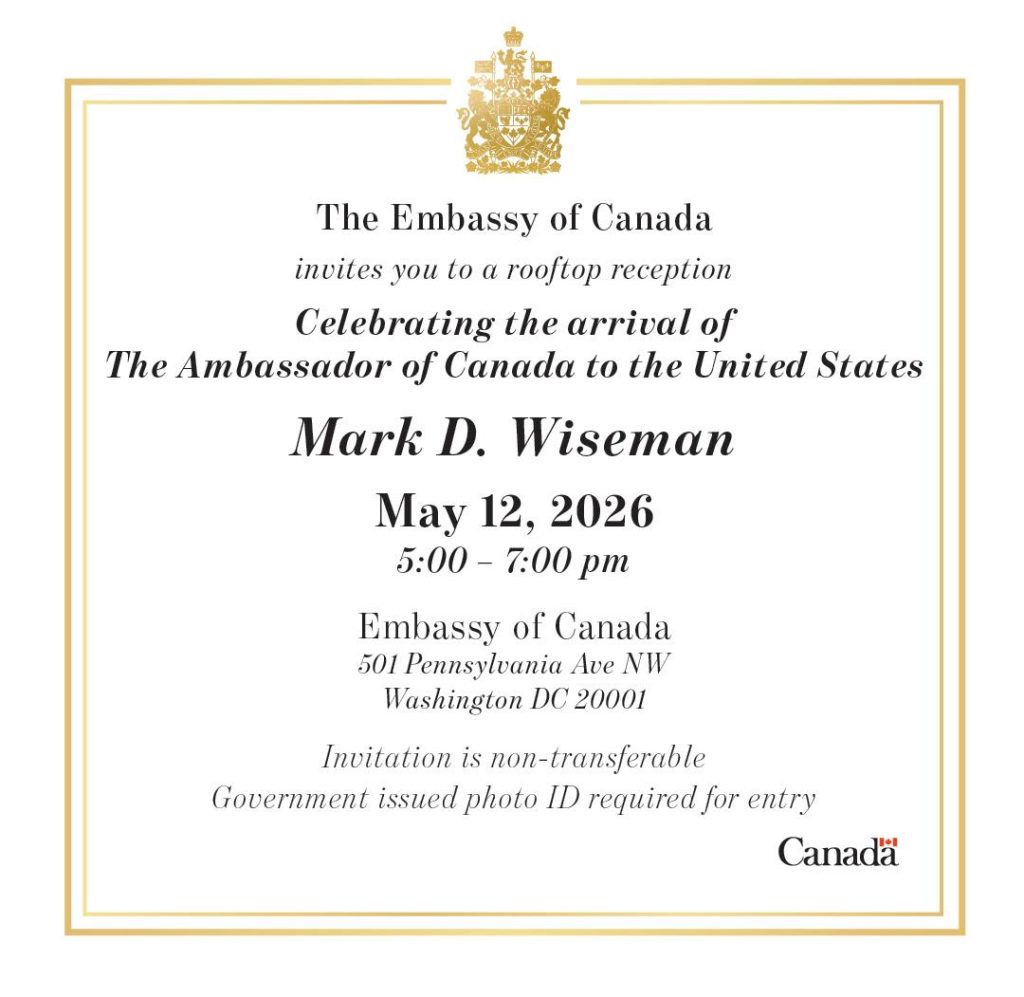 La recepción, prevista para el 12 de mayo en Washington, fue organizada para celebrar el inicio de funciones del diplomático canadiense, pero el contenido del mensaje provocó críticas inmediatas dentro del Bloc Québécois y del Partido Conservador, que acusaron a Wiseman de ignorar la realidad lingüística de Canadá.